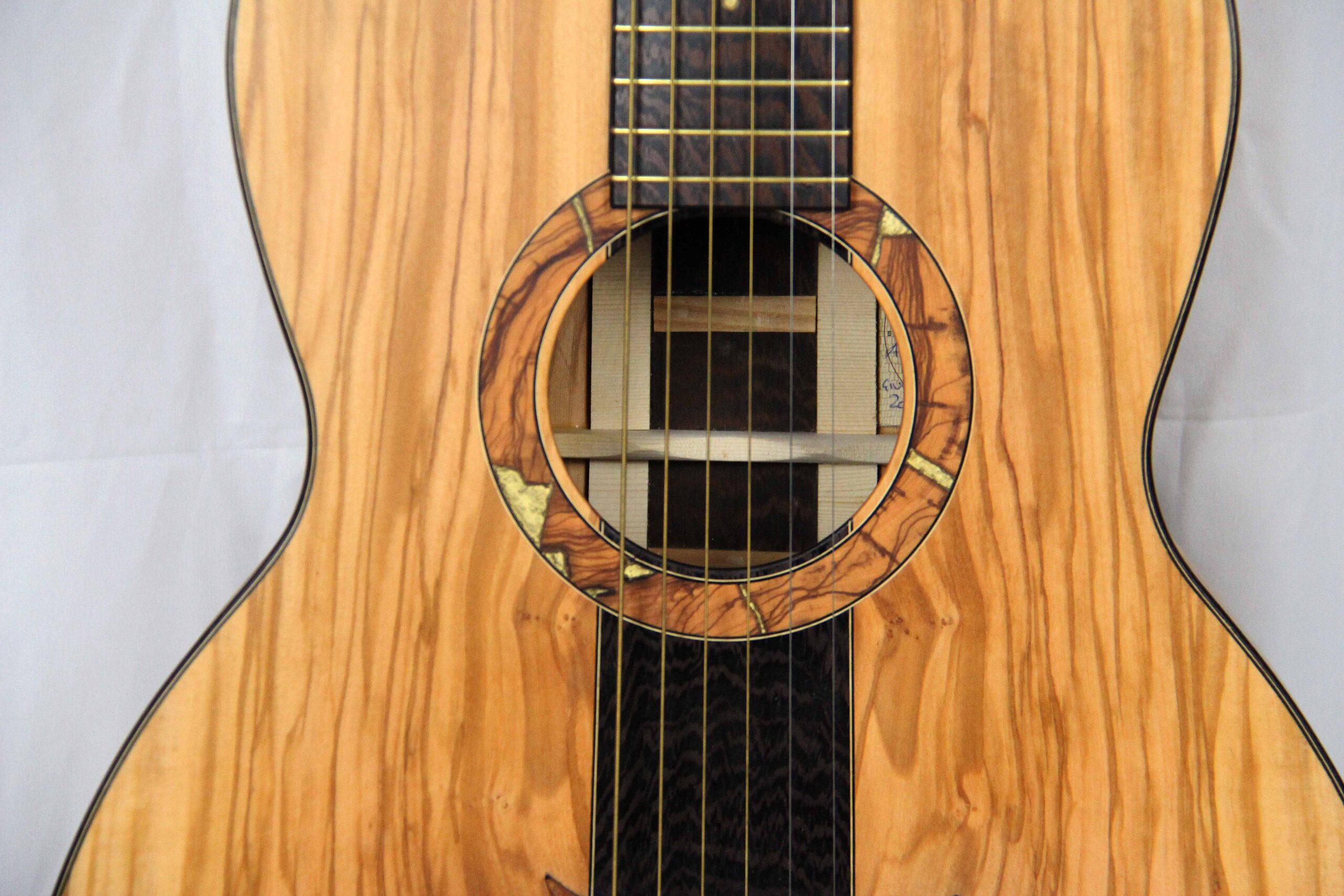 – Top Ulivo/Wengè– Fasce e fondo Ulivo/Wengè– Tastiera e ponte Wengè – Truss rod a doppia azione– Meccaniche Gotoh
